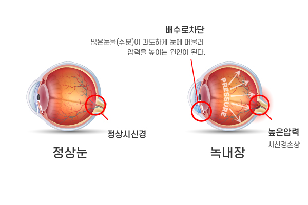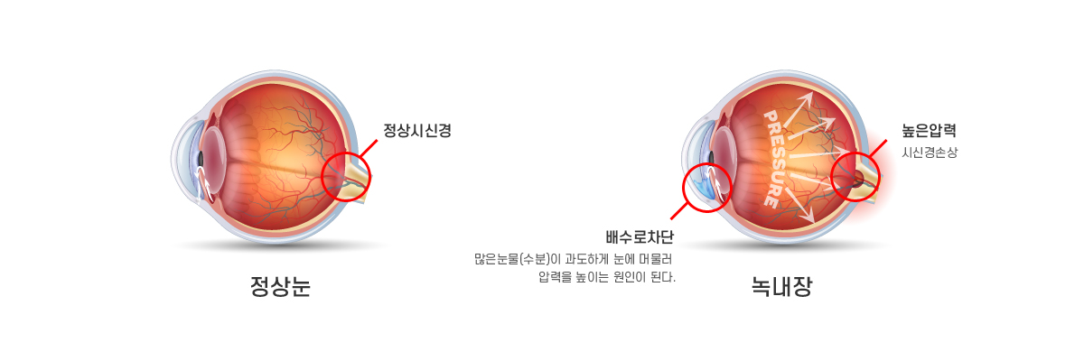 녹내장은 안압 상승 또는 다양한 원인에 의해 시신경이 손상되면서 시야가 점차 좁아지는 질환입니다.